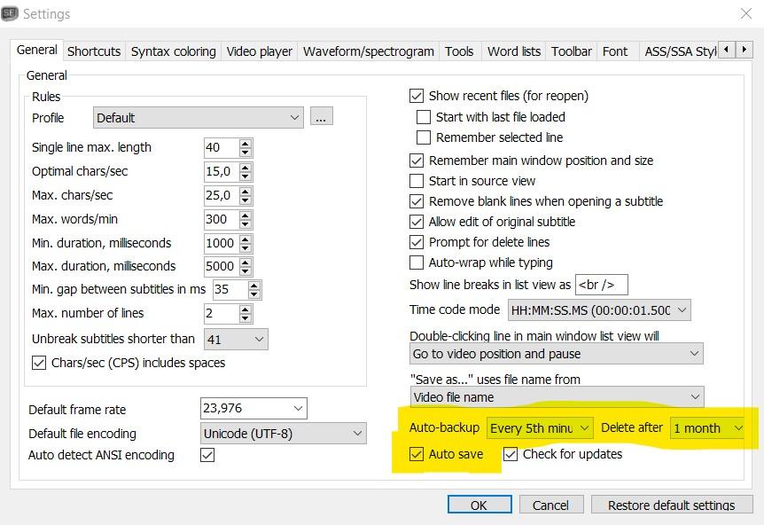 emeline-whovian Posted March 4, 2020 Report Share Posted March 4, 2020 Hello everytous, help, ! Quelqu'un saurait quoi faire quand subtitle Edit ne répond pas depuis plus d'une demi-heure et que si on l'arrête on perds plus de 3 minutes = une à deux heures de boulot ?? Comment sont réglés les paramètres de sauvegarde automatique ? C'est dans les options. Ensuite, regarde dans le menu File puis Restore auto-backup et tu verras la dernière sauvegarde automatique. 2 Link to comment Share on other sites More sharing options...