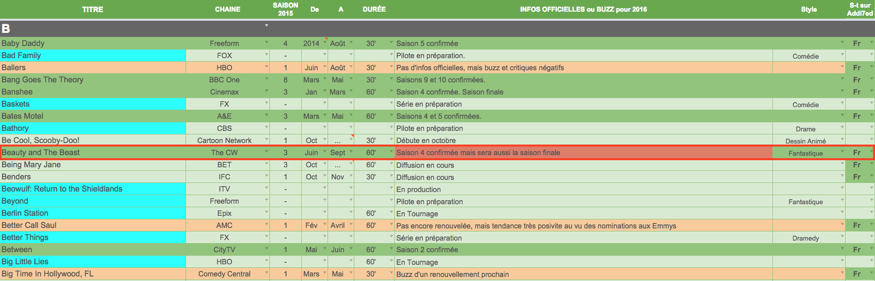 Sachkin Posted April 12, 2015 Report Share Posted April 12, 2015 Oui en effet, je parlait de l'épisode 11 justement. D'après ce que j'ai vu/lu ils n'ont pas encore de date, justement parce que la diffusion coïncide avec Pretty Little Liars qui est aussi une série à succès, visiblement ils vont essayer de faire une fois sur deux... Tout ça pour dire qu'ils n'ont pas de date :/ Et même d'après ce que je vois ils prévoient de s'arrêter à l'épisode 12 cf image Link to comment Share on other sites More sharing options...