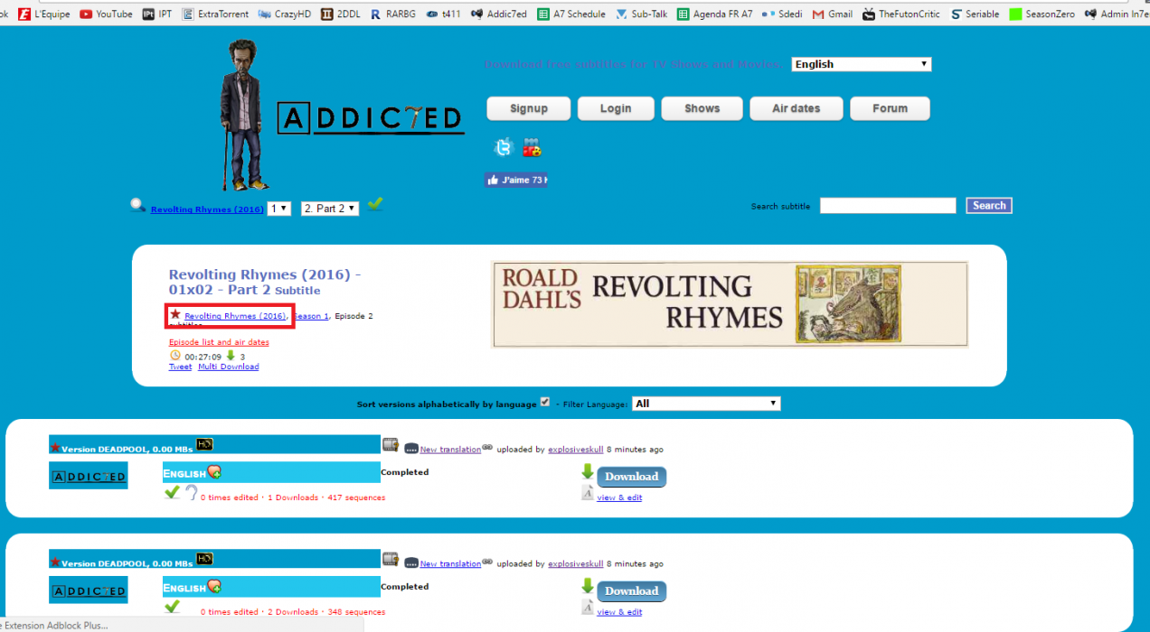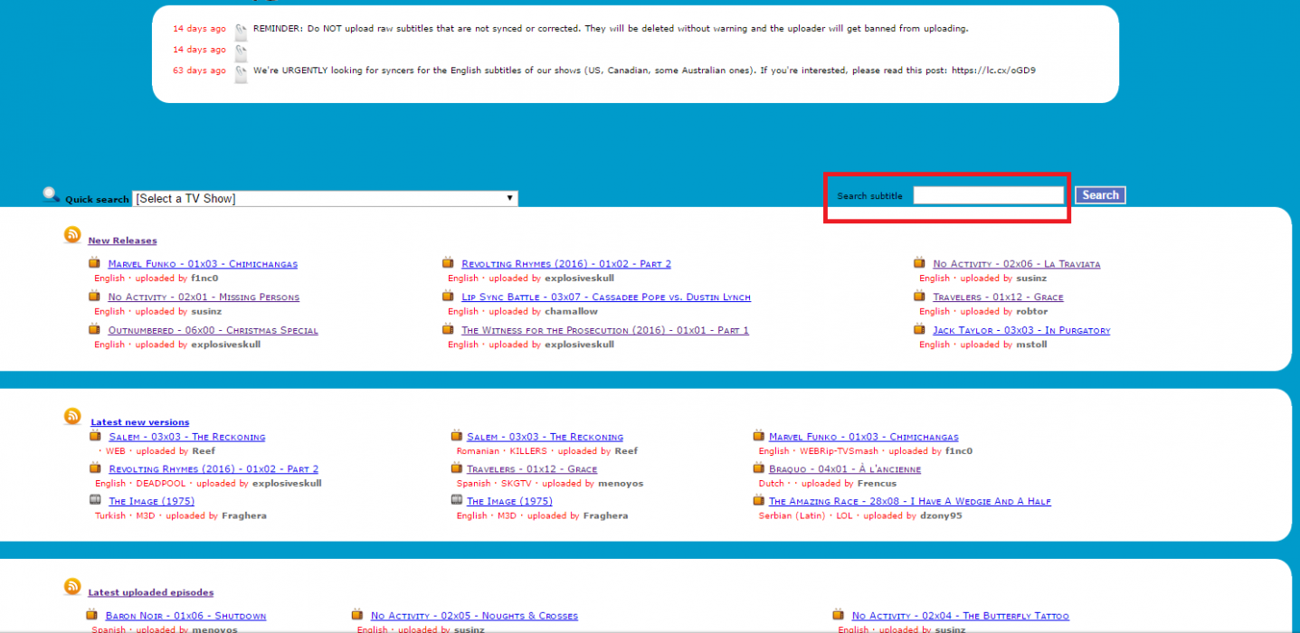 Over the past several days I've tried to click the shows link which brings up the first character title selection bar to allow me to select the show I want to select multiple subs from.